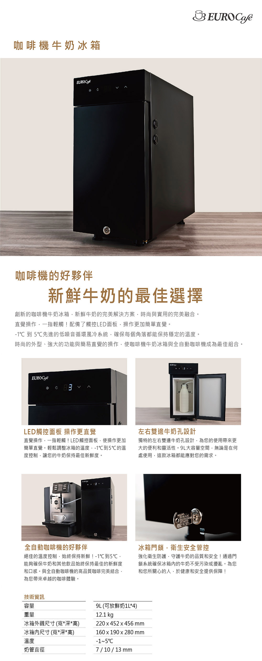 規格介紹:EUROCAFE咖啡機牛奶冰箱(有壓縮機)